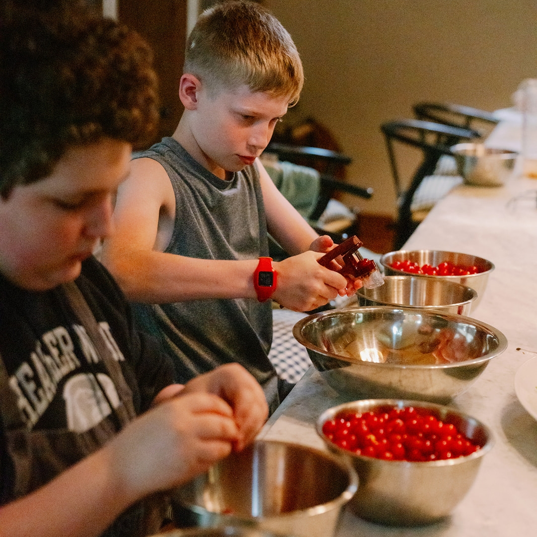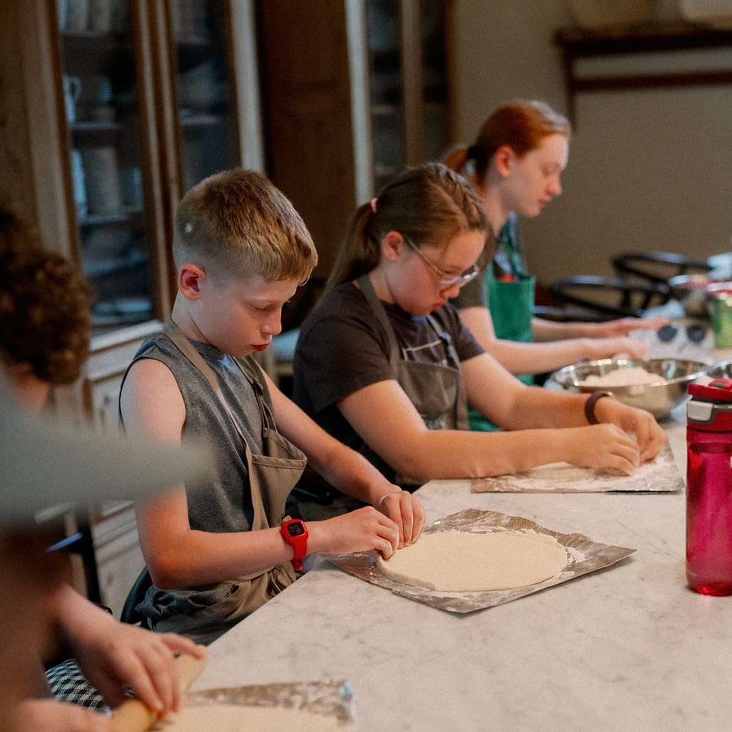 Spend the day at the farm discovering where food comes from and how ingredients move from field to kitchen. In partnership with FrogLegs Cooking School, our kids camps invite your child to explore the gardens, visit the creamery, and meet the animals, including Stinky the donkey, who is always happy to say hello and never turns down a scratch behind the ears. Along the way, your child will gather seasonal ingredients and use them in simple, hands-on cooking projects designed especially for kids. With plenty of time outdoors and in the kitchen, each camp sparks curiosity, builds confidence, and helps your child form a real connection to food, farming, and the natural world.