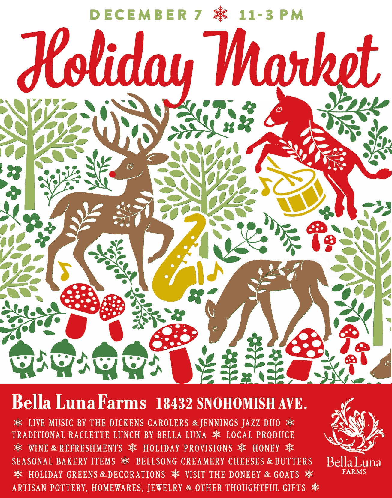 Join us Sunday, December 7 from 11-3 for a festive afternoon at Bella Luna Farms! Come ready to shop a beautiful selection of seasonal goods, farm-fresh provisions, Bellsong Creamery cheeses, baked treats, and gifts from our favorite makers. You’ll also find some of our favorite local vendors — perfect for checking off your holiday shopping list — along with festive touches and holiday surprises throughout the afternoon.